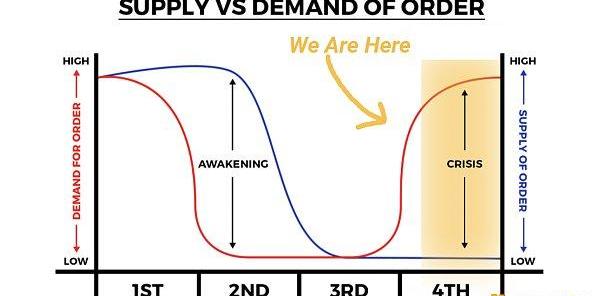 ?BrandonQuittem在“比特幣和第四次轉折”文章中展現了兩個不同步的正弦波形,一個代表著秩序的維持,另一個代表著對秩序的需求。