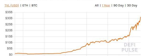 一年時間,DeFi鎖倉規模增長30倍,達到300億美元