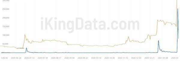 狗狗幣再次出現巨型區塊現象,鏈上交易筆數也在同一時間段出現大幅增長,創下自2020年7月8日以來的新高。數據反應狗狗幣的投資們處于高度興奮中,但數據也告訴我們興奮時短暫的,狗狗幣的價格同樣在該時段附近達到了最高點。