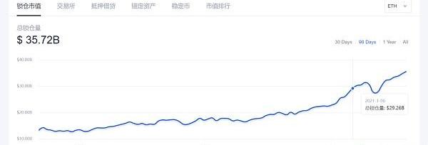 作為納斯達克上市公司,微策略的動作引發了其他公司效仿,隨著這些企業級投資者的持續入場,以比特幣為代表的數字資產市場也獲得了新的增長動力,迎來了牛市行情:比特幣價格創下了41,950美金的歷史新高,帶動比特幣總市值突破一萬億美金關口,ETH重新占領1000美金高地,以太坊上的DeFi總鎖倉量也在今日創下了357.2億美金的歷史新高。