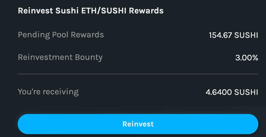 賞金獵人可選擇復投,將系統中資金池所挖代幣兌換為ETH,再復投至資金池,從中獲得總獎勵的3%獎金。