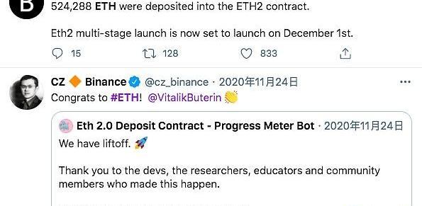 524.288ETH已經存入了eth2.存款合同,以太2.0起源將于12月1日晚上12時,我們成功了。