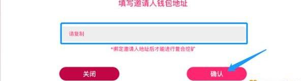 注意:首次參與復合資產挖礦的用戶,此處會彈出“綁定邀請人錢包地址”彈窗,復制粘貼邀請人錢包地址,點擊即綁定成功。比如錢包地址: