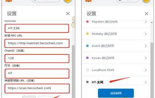 需要在MetaMask中設置火幣主網網絡參數;