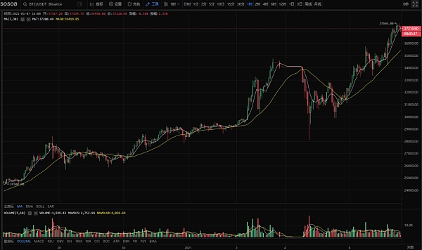 1月2日晚間,比特幣首次突破30000美元大關,隨后其行情更是不斷走高,到了1月3日晚間,一枚比特幣價格為34684.9美元,折合人民幣約22.61萬元,創歷史新高。