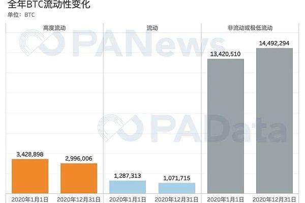 全年非流動或極低流動的BTC增長了約107.18萬枚。