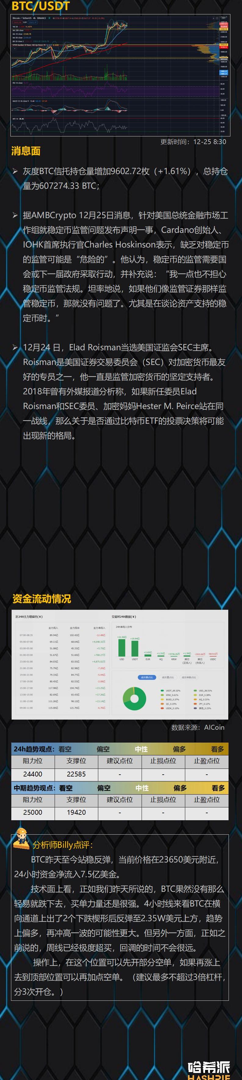 1900/1/1 0:00:00行情概述: 繼上期報告所述,本周CME比特幣缺口范圍為23710-26645,存在一定回補概率,截至目前已回補至26080,回補空間達565美元;隨周線級別慣性上漲動能.