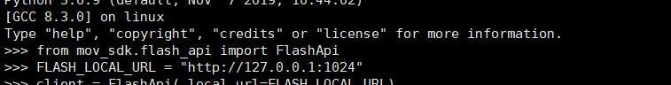frommov_sdk.flash_apiimportFlashApi//1024為dealer.conf中設置的端口號,此處需與dealer配置文件相同FLASH_LOCAL_URL="http://127.0.0.1:1024"client=FlashApi(_local_url=FLASH_LOCAL_URL)//創建對象