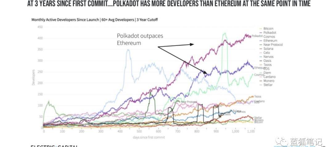 在首次提交后的三年期間,波卡的開發者數超過同期的以太坊,波卡初步顯示出了力量。