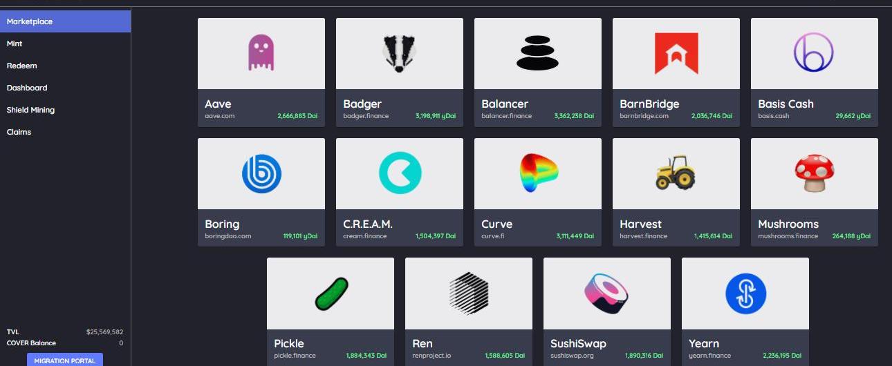 角色方面,投保人自然就是想給某項目買固定期限保險的人,據官網,目前Cover支持為Aave、Balancer、Curve等項目投保,投保形式是用DAI購買CLAIM。假如1CLAIM價格是0.1DAI,那么花費1DAI可以得到10CLAIM的保額,索賠時就可以用10CLAIM換得10DAI。