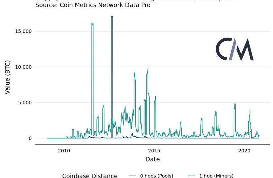 為了分析比特幣網絡初期的資金流,0-hop地址資金流可能是更合適的工具。即使在今天,1-hop地址資金流也只是礦工活動的近似值,因為礦池的錢包結構各不相同,并且這些資金流中可能錯誤地包含交易所地址。不過總的來說,這一研究模型代表了當今網絡條件下對礦工支出更全面的觀察。