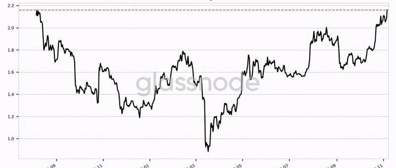 從鏈上的角度來看,比特幣的市場價值與實現價值正處于15個月高點2.160。MVRV可以用來比較投機者和資產持有人的估值,目前它是一個新高,這表明持有人以當前價格提供了長期支撐,投機周期又開始下降。