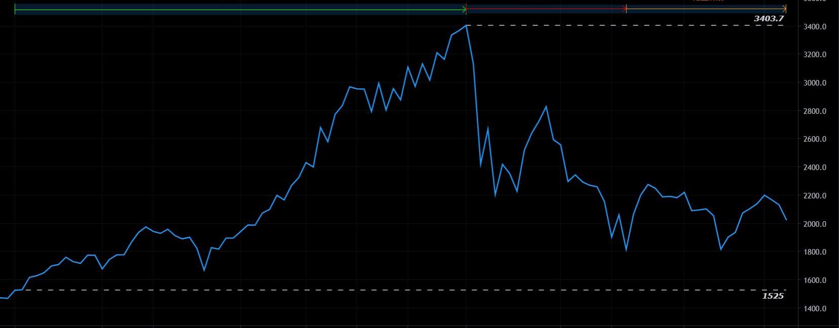 上圖為FTX的DeFi指數,該指數由一籃子熱門DeFi代幣組成,包括KNC,LEND,MKR,KAVA,ZRX,LRC,REN,REP,BNT,SNX和COMP,可用以反映DeFi市場的整體發展情況。如圖所示,第三季度DeFi指數7月1日最低為1525,9月1日達到峰值3403.7,此后雖然大幅回落但仍高于7月之初,Q3整體發展可分為三個階段: