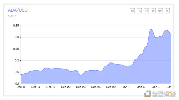 自上周日以來,Cardano(ADA)的價格上漲近?80%,只有?Stellar Lumens(XLM)在同一時期實現了更高的漲幅,達到?142%。