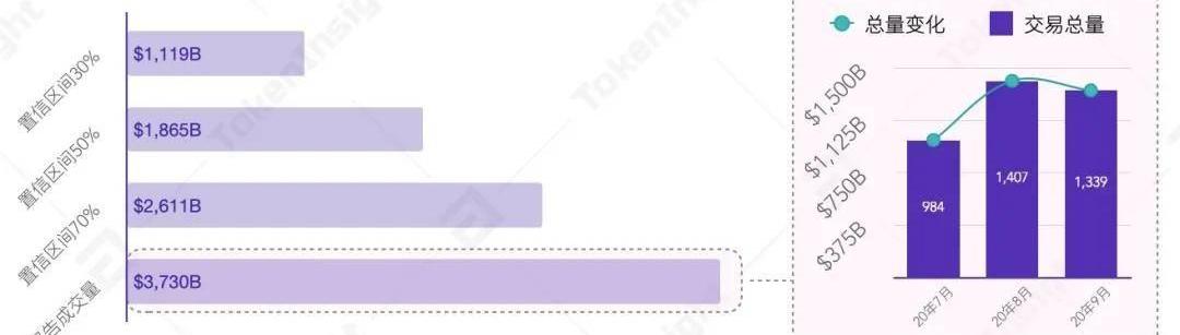 20Q3中心化交易所現貨成交總量和置信區間&20Q3各月中心化交易所現貨成交量,來源:TokenInsight