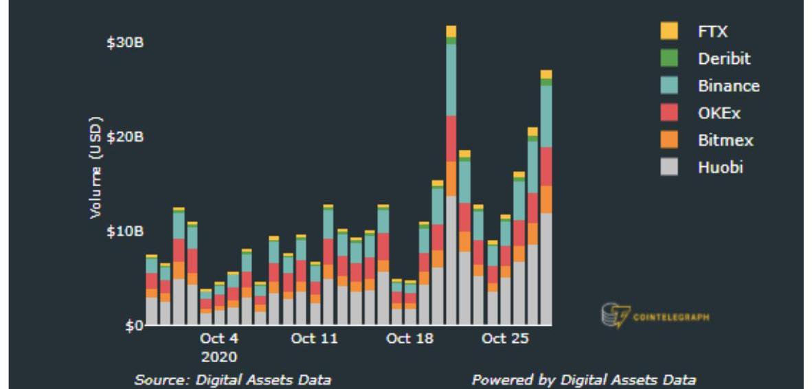 比特幣價格繼續向2020年新高邁進,人們將目光聚焦于該數字資產上。與此同時,Defi代幣價格暴跌,圍繞去中心化金融的炒作逐漸消失。數據顯示,去中心化交易所的交易量正迅速下降,這表明DeFi行業的衰弱。