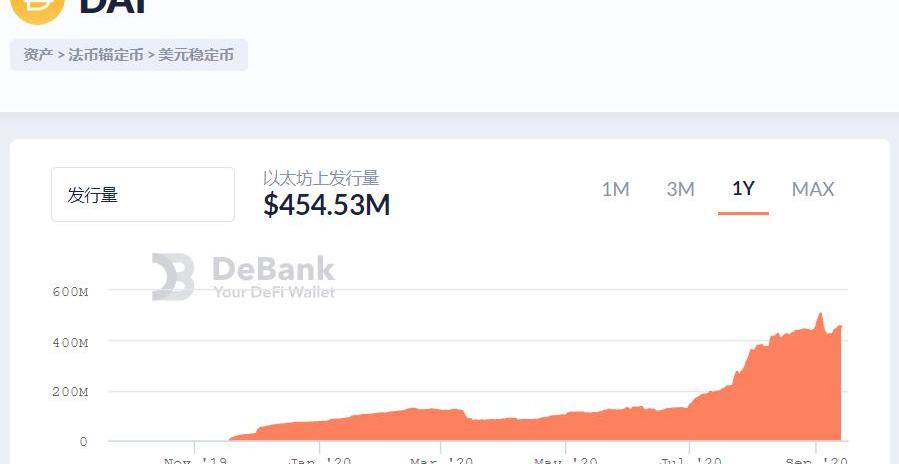 DAI的規模在近期取得了快速增長,但受制于其超額抵押模式,以及基于風控對可存儲代幣上限做出的控制,其整體規模相比中心化穩定幣,依然不是很大。目前DAI的發行量在4.5億枚左右。