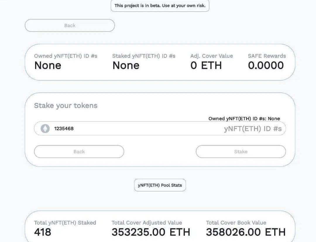 在Yieldfarming.insure的平臺上,支持兩類NFT資產:yNFT(ETH)和yNFT(DAI),分別針對ETH和DAI兩類資產的保險保單。