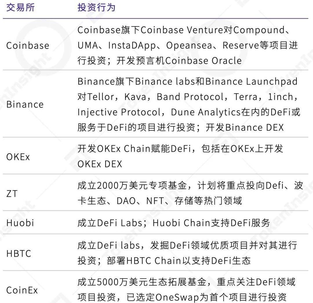 各交易所DeFi領域投資行為,來源:TokenInsight