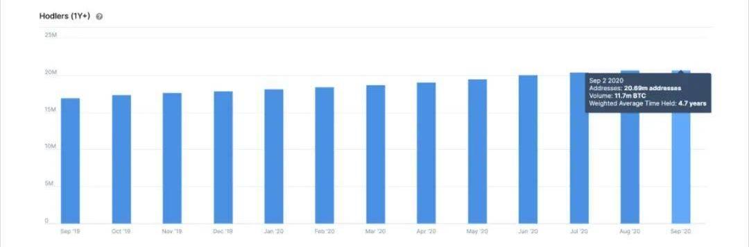 隨著密碼學貨幣領域將重點轉向高收益項目,我認為將有很大一部分比特幣持有者加入這一趨勢。通過Hodler指標,我們可以觀察到,有2069萬個地址持有的共計1170萬個比特幣,在超過一年的時間里都沒有動過。因為能夠生息的DeFi和CeFi方案比較新穎,這些囤幣者可能大部分都無法從比特幣持倉中賺到什么。