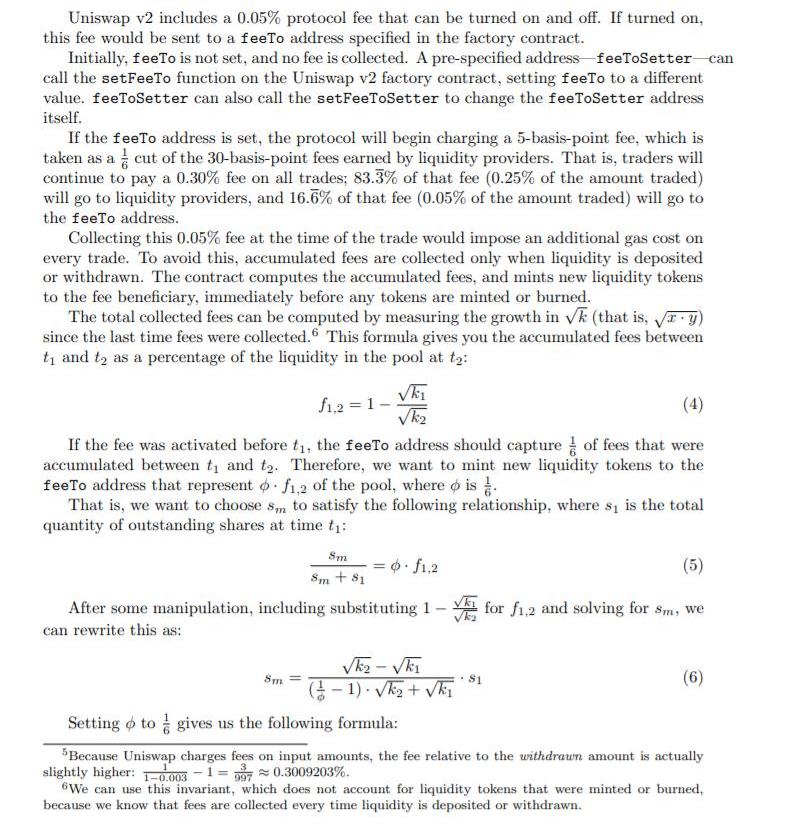 Uniswap白皮書第5頁?Uniswap唯一的經濟參數是每筆交易0.30%的交易手續費。該手續費會激勵給投入流通性池代幣或eth的參與者,這是為了鼓勵人們將其資金投入流動性池中。如果這筆手續費的設計過高或過低,可能會改變每個資金池里的資金水平,進而改變流動性提供者的回報,但是對流動性提供者的資金沒有直接影響。