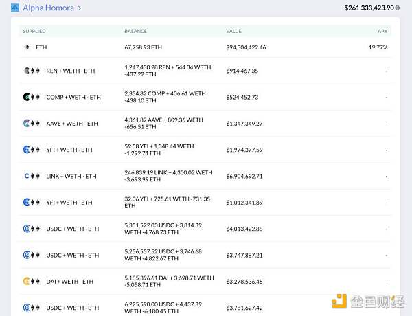 由于 DeBank 依然將 Alpha 列入「EARN」類別,在上面的「總借款金額」圖片中沒有 Alpha 相關信息。 據稍早的數據,我們可以得出結論說:Alpha Homora 實際已經超過了 Aave V2 ,在這一榜單中名列第四。