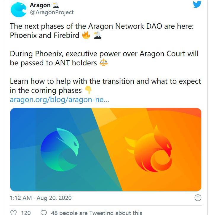 Aragon將在未來幾周內啟動“鳳凰”升級,將協議的控制權移交給ANT持有者。