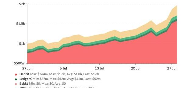 7月29日,巴拿馬數字貨幣衍生品交易所Deribit發布推文稱,該平臺前一日共進行47500份比特幣期權合約交易,這些合約總價值為5.39億美元,是比特幣減半當天達到的歷史前高1.96億美元的2.73倍。
