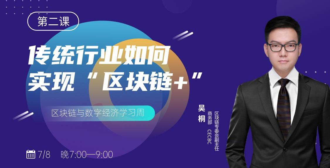 7月8日晚,第二課登陸巴比特學院,授課導師是商務部CECBC區塊鏈專委會副主任吳桐,他的分享主題是《傳統行業如何實現‘區塊鏈+’”》,吳桐講述了如果通過鏈改重塑社會結構和經濟格局這一話題。