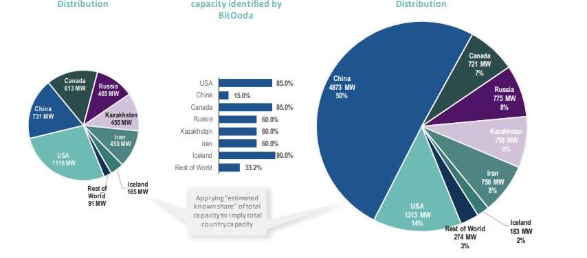 圖:調查的挖礦能力的地理分布與估計的9.6GW電力
