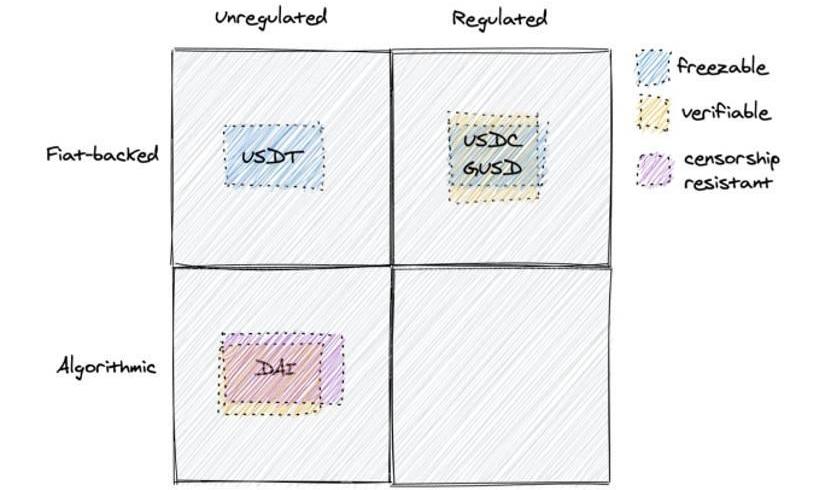 加密市場上那些基于法定貨幣支持的穩定幣都是可審查的,同時USDC和GUSD均是受監管的,因此意味著你持有的基本上都是可驗證儲備資產。但是,如果您需要非主權貨幣來錨定一些以美元結算的資產價值,那么可能就需要使用Dai之類的穩定幣。
