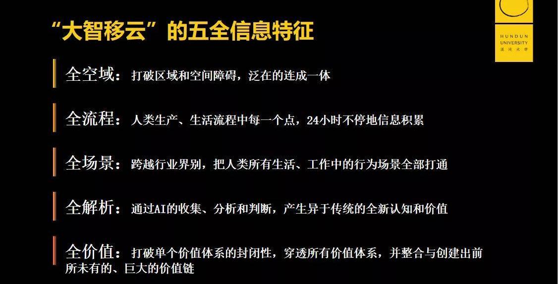 為什么互聯網數字化平臺會有如此強大的顛覆性?研究表明,“大智移云”基礎平臺存在“五全信息特征”:全空域、全流程、全場景、全解析和全價值的信息。