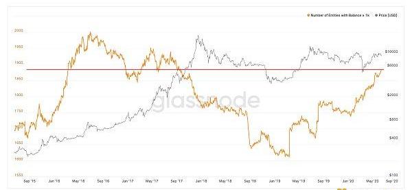 XRP/HKD-3.61%根據Glassnode于6月15日發布的“每周鏈上報告”顯示,自2020年1月以來,持有1000BTC或更多的交易者的比特幣鯨魚數量一直穩定增長。?目前持有至少1000BTC有1882條鯨魚。