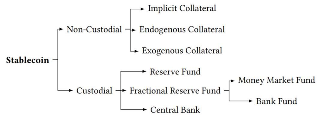 下面我們從穩定幣的幾種典型類型出發,描述不同功能組件的風險和權衡的維度。托管型穩定幣和非托管型穩定幣之間的區別顯而易見,前者依賴于對第三方的某種信任,后者的目的是去信任化。