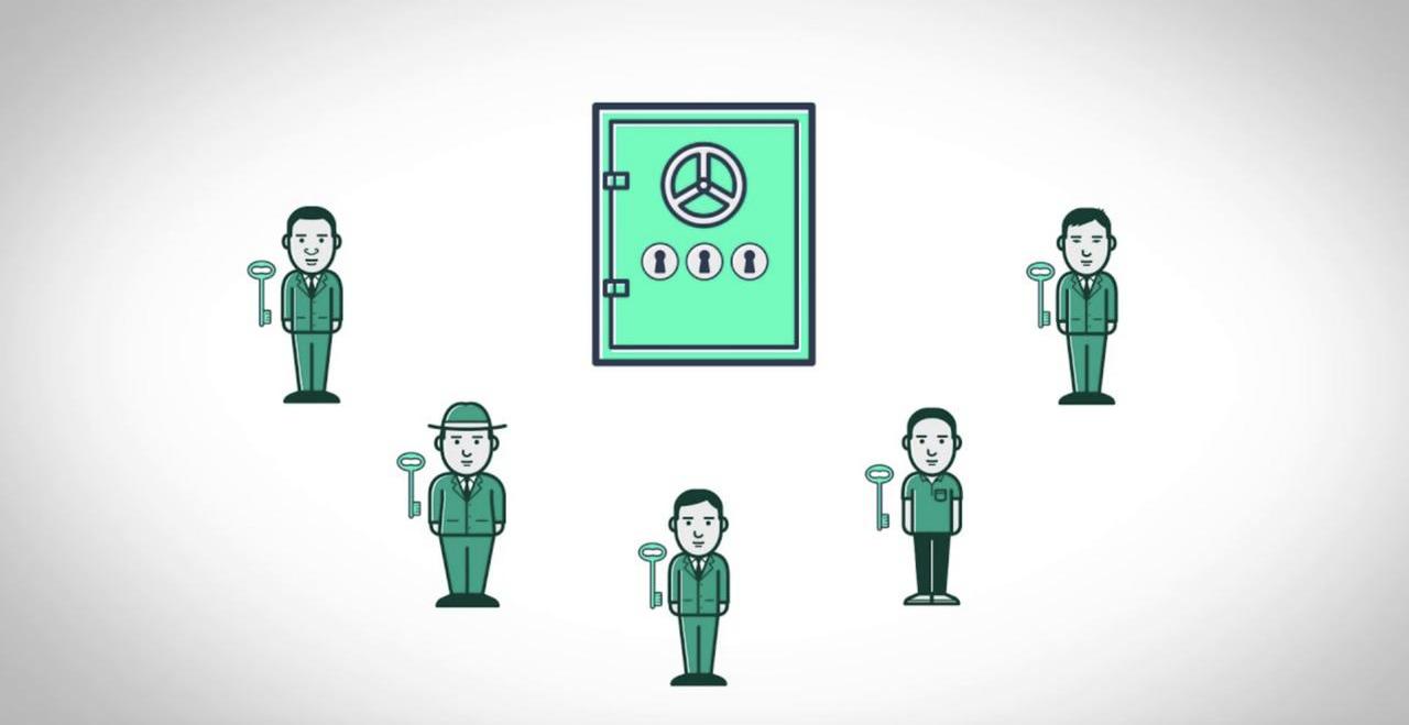 第一個元件是私鑰分割。私鑰分割機制指的是,一個私鑰被分割并分散到不同的參與者手中,每個參與者持有該私鑰的一部分。個人持有的部分無法用來重構私鑰。只有將達到預定數量的個人持有部分結合起來,才能重構私鑰。