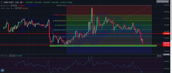 昨天,多頭未能突破最近的支撐位152.702美元(現在轉為阻力位),導致XMR價格在亞洲交易時段早盤大幅下跌。隨著波動性的下降,空軍打破了146.880美元的低點,印出了129.415美元的新低。