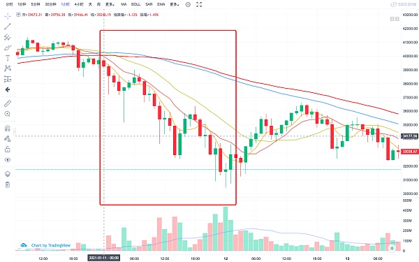 ▲ 2021年1月21日,BTC價格跌幅為20.36%。數據來源:58COIN