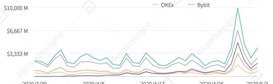 2020Q2起主要合約交易所BTC永續合約成交量來源:TokenInsight
