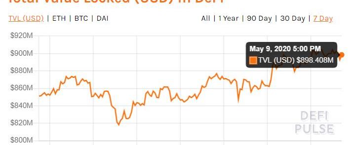 在減半預期的刺激下,BTC市場價格逐步走高,市場對于價格持續上行的看法也逐漸形成一致,繼而傳導到其他主流幣種,鎖定在DeFi中的美元總額近期持續沖高,環比上周增長5%,這是投資人對于看漲預期的兌現: