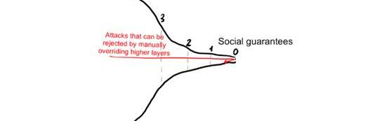 例如,如果加密的Hash函數出現問題,社會層可以達成人為共識來替換出現問題的部分。