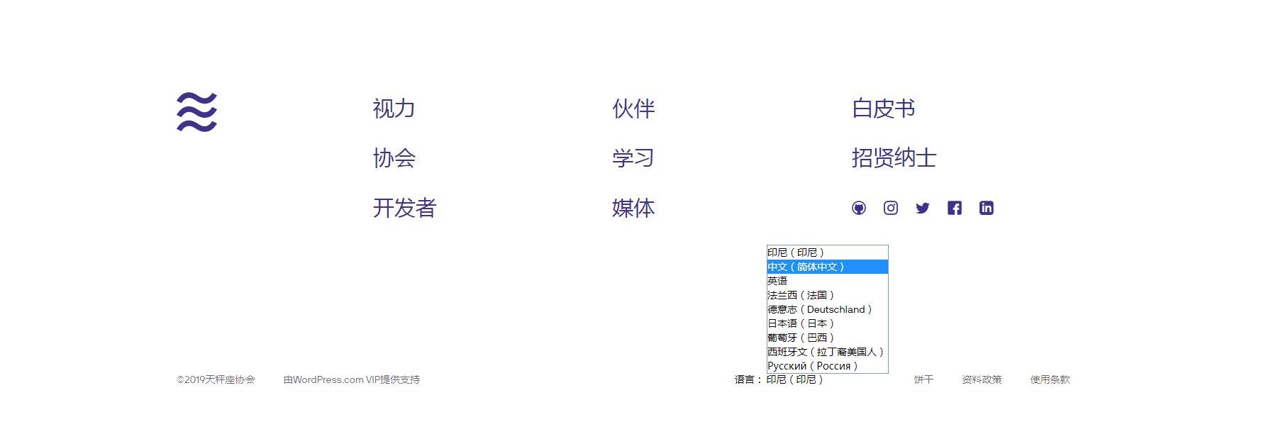 曾經的Libra官網,支持中文在內的9種語言版本,并有相應語種的白皮書