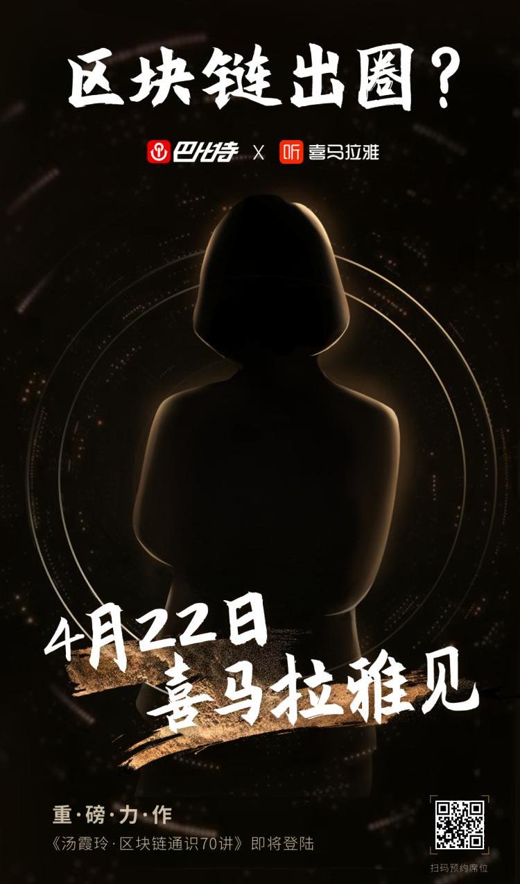 感謝喜馬拉雅的支持,將《湯霞玲·區塊鏈通識70講》作為喜馬拉雅423聽書節的重點課程推廣,一起打破認知壁壘,幫助區塊鏈出圈。
