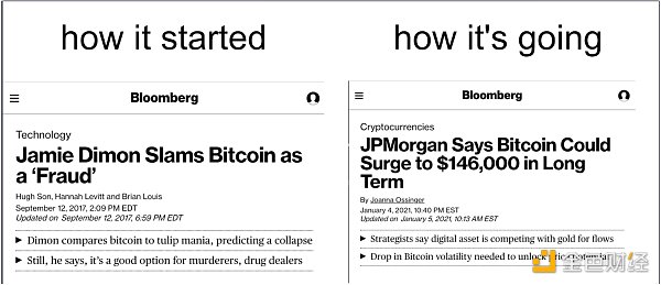 對BTC而言,2021年意義重大,BTC價格將猛漲至4萬美元,比2017年的歷史高點高出一倍多,讓持幣者歡欣鼓舞,懷疑者難以置信,但是必須注意到,自2017年以來,世界發生了很多變化,所以這輪牛市與上一次大不相同。