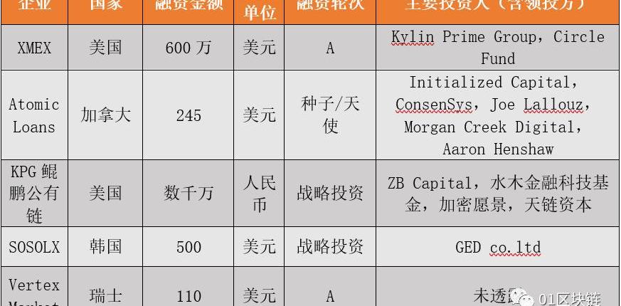 表1:2020年4月第3周區塊鏈項目/公司融資詳情