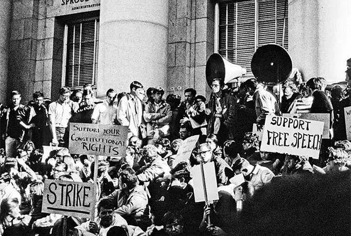 所以60年代就成了一個個人探索和抗議爆發的年代。60年代恰好正值電視媒體普及,越戰成了第一場被直播的現代戰爭。美國國內很快爆發了各種各樣的抗議和反戰活動,大多數人把自己放在了這種權威的對立面,希望能推翻冷戰軍事工業的官僚體系。上文提到,伯克利大學的言論自由運動也是其中之一。
