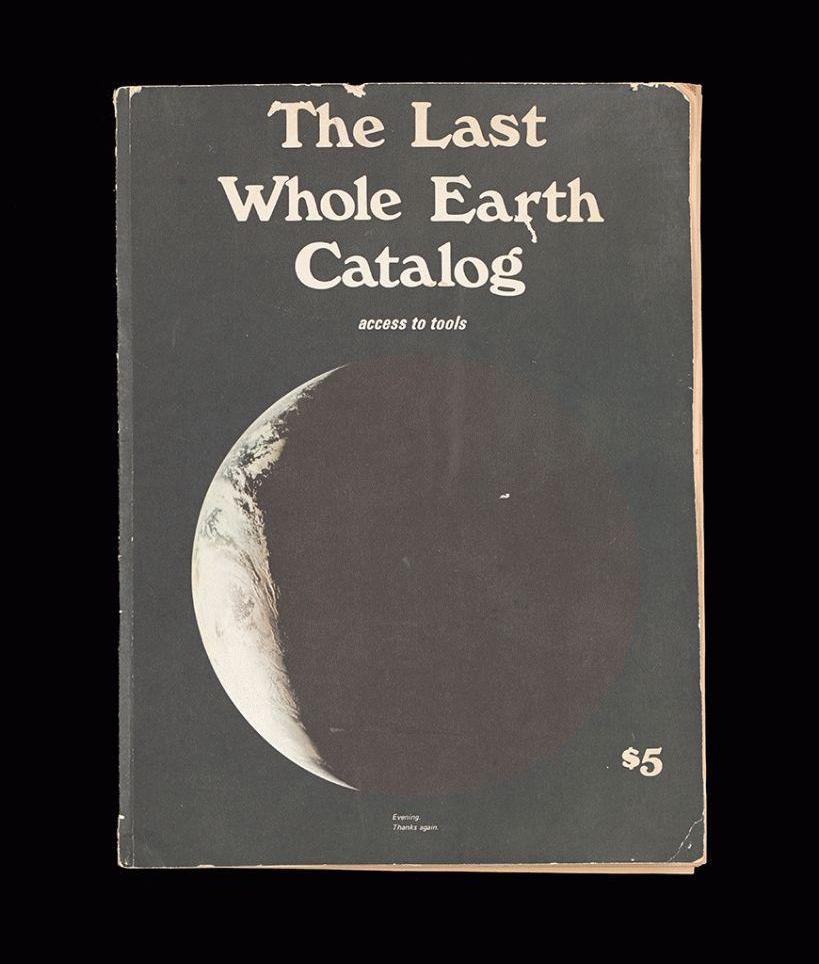 1966年,布蘭德意識到可以出版一本書,為散居在各個角落的公社提供生活所需的工具目錄和生存指南。更重要的是,為實踐公社生活的人提供精神世界的養料。于是,憑借著剪刀、膠水,他和一群志同道合的朋友開始編輯第一本《全球概覽》。這本書被喬布斯稱之為那個時代的Google。信息技術在《全球概覽》中占有重要的位置,目錄不僅有工業產品和手工用品,也有機械和電子裝置,比如惠普的臺式計算機。就像藝術組織USCO那樣,新公社運動的參與者相信,包括計算機在內的小型技術可以用來探索新的生活方式、體驗新的精神世界,它也會改變個體意識和社會運作模式。《全球概覽》也將小型技術視為個體獲得自由的手段。
