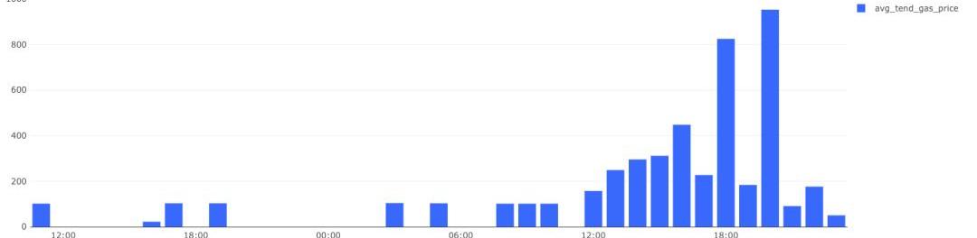 在Maker的案例中,一些用戶試圖對出價為0美元的競標者提出反報價,但由于網絡擁塞,他們未能及時被挖掘,從而導致拍賣提前結束。我們可以看到,平均中標者支付了近1000gwei,或標準Ethereumtx費用的100倍來開采。即使是普通用戶,也不得不一次又一次地在笨拙的界面上重新提交他們的界面,只是為了保存他們的金庫。