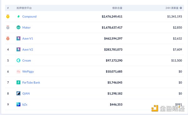 各DeFi借貸平臺借款占比 數據來源:Debank