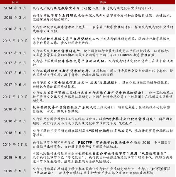 下表是招商證券整理的我國央行研發數字貨幣進程: