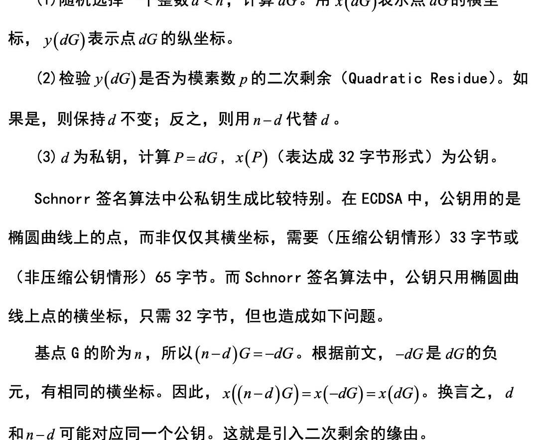 第二,Schnorr簽名算法具有不可延展性。簽名延展性的含義是,第三方在不知道私鑰的情況下,能將針對某一公鑰和消息的有效簽名,改造成針對該公鑰和信息的另一個有效簽名。ECDSA簽名算法則有內在的可延展性,這是BIP62和BIP146針對的問題。